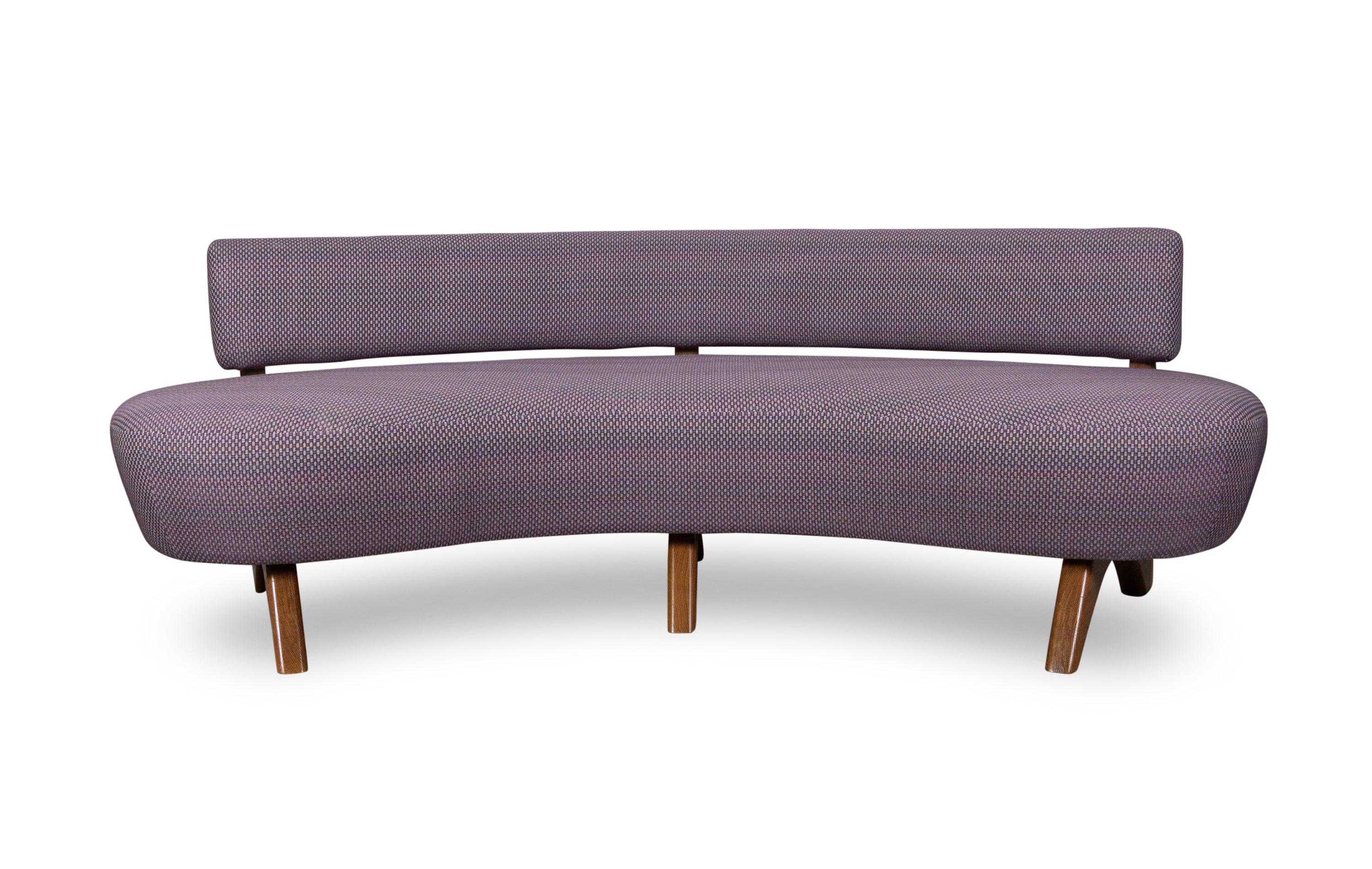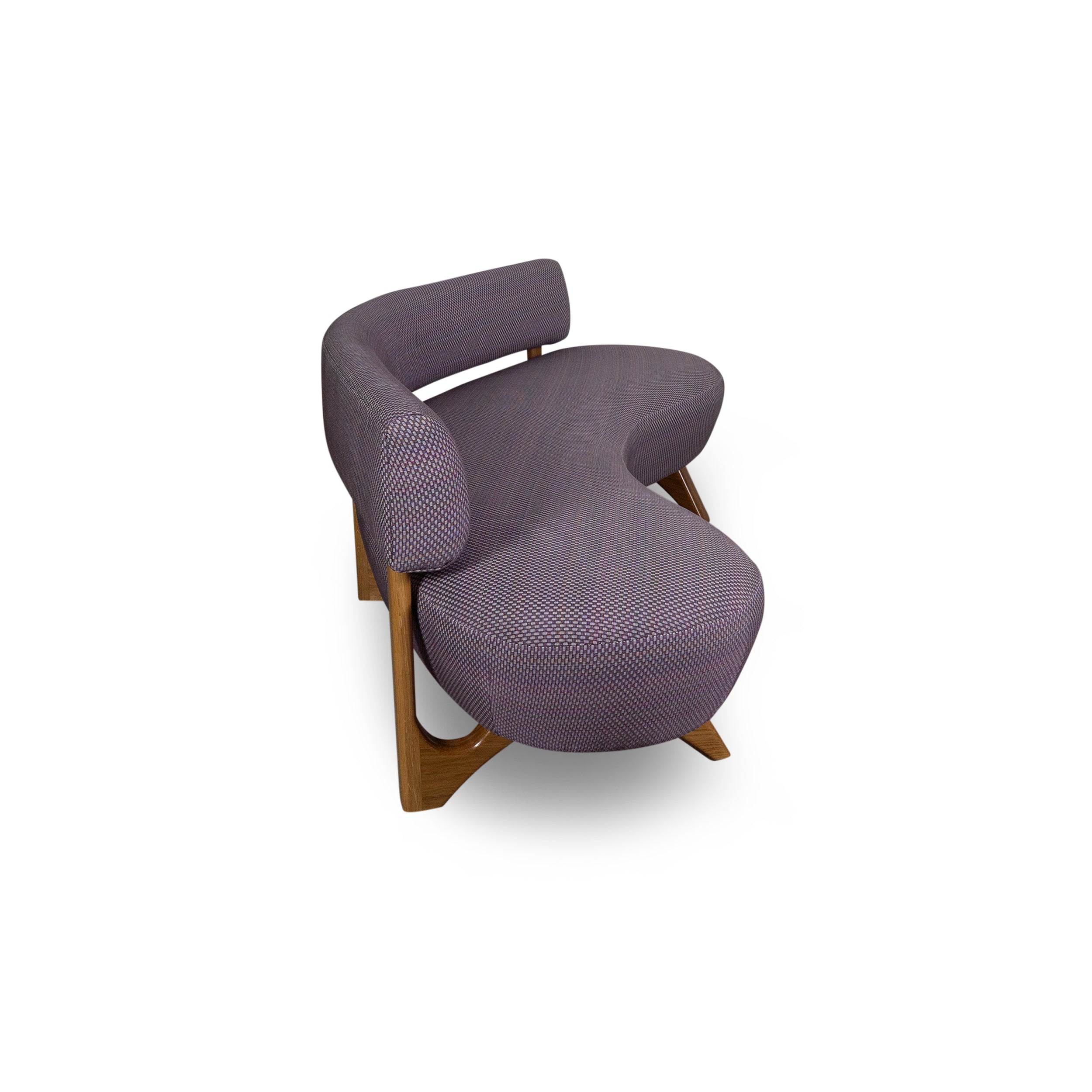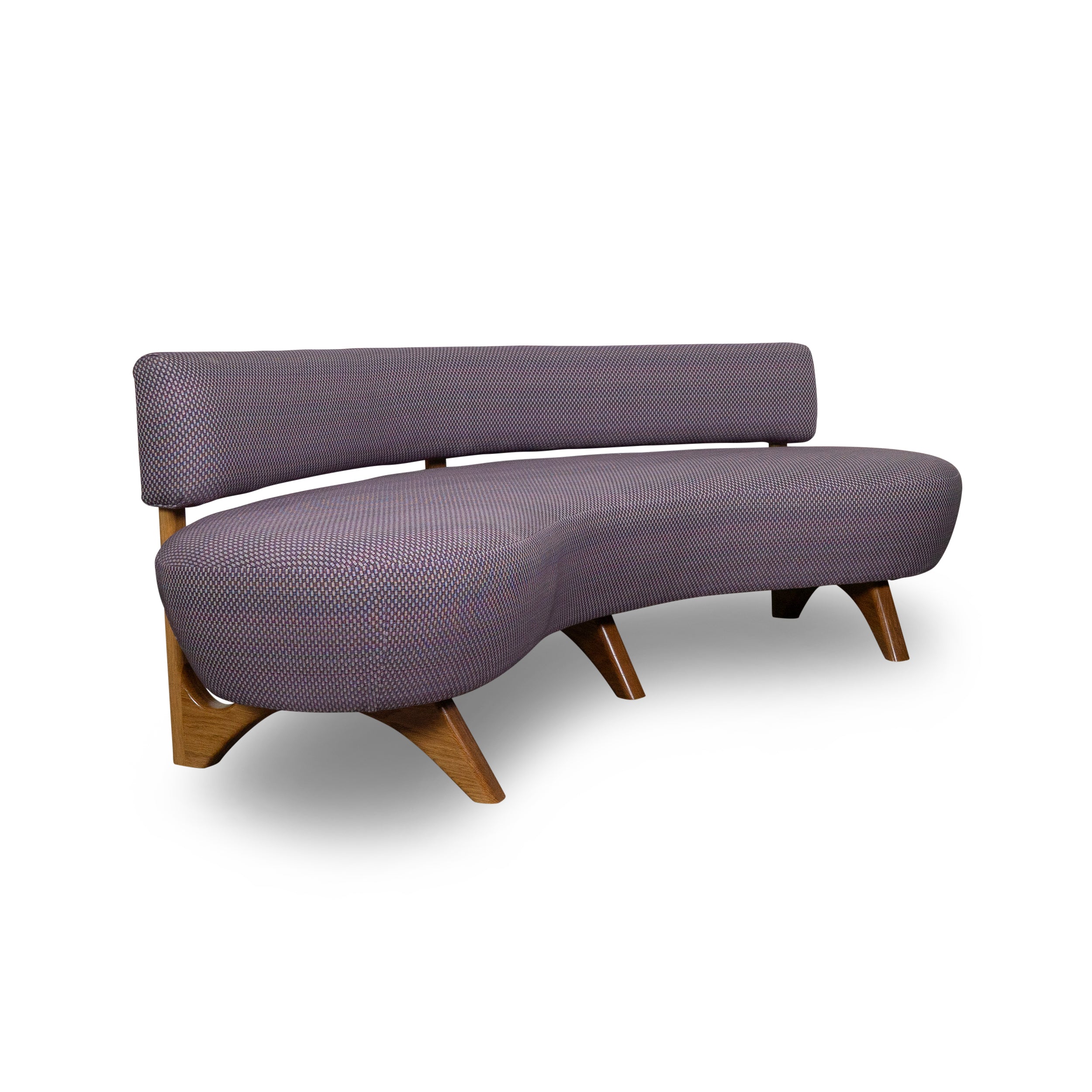 Refined and fluid, the Kaiden Banquette pairs a swooping, curved seat and back with angular solid wood legs for an unexpected sense of lightness. It's at home as a dining banquette, among more traditional living room furniture, or even in hospitality and restaurant spaces.