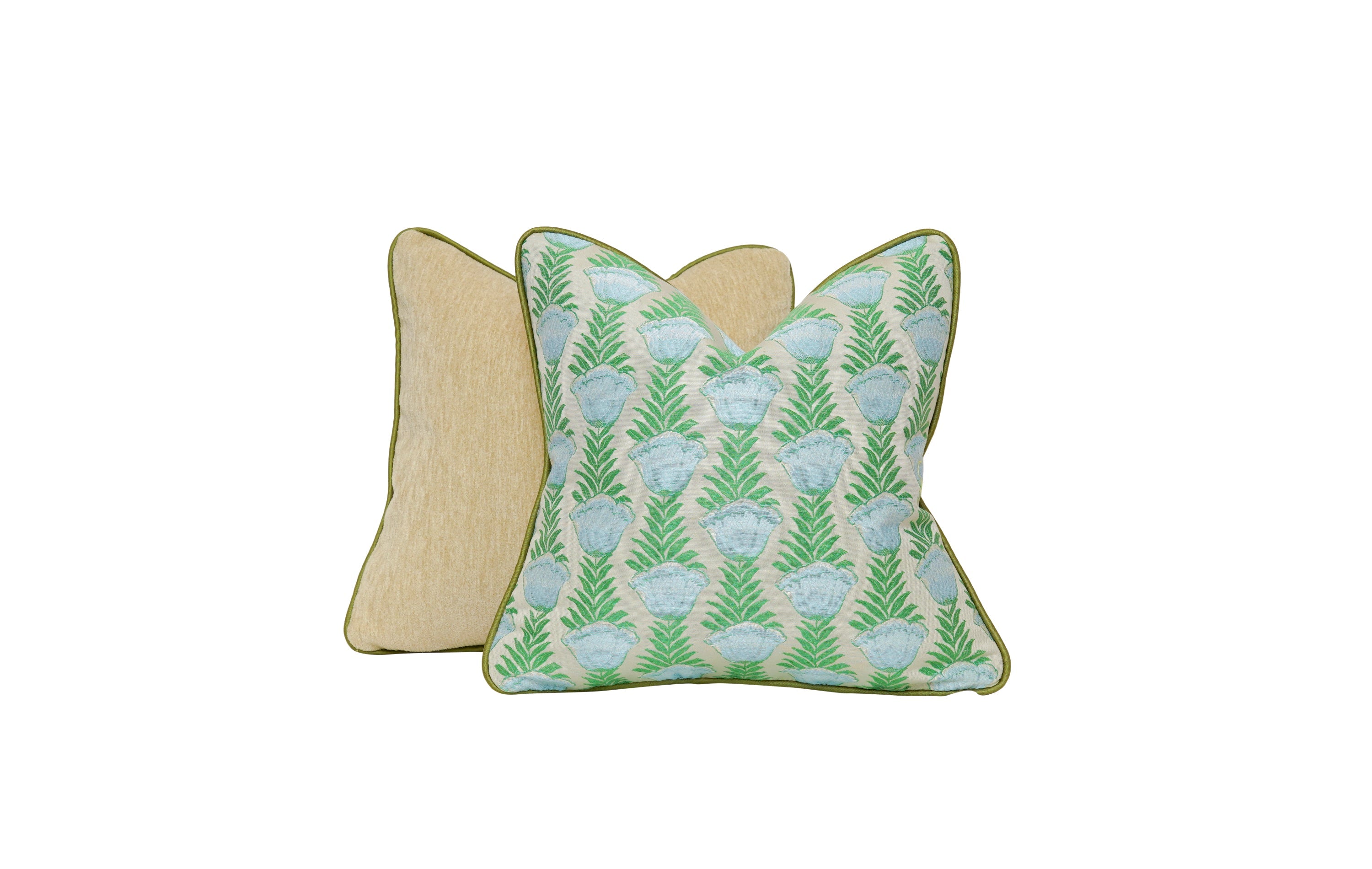 Handcrafted in Norwalk, CT, the Colony Popaveri Aqua Square Pillow features a tailored silhouette accented by a soft aqua and green botanical pattern that brings a fresh, refined energy to curated interiors. Finished with a supportive fill, it is designed to maintain its shape while offering lasting comfort and a polished visual presence. Sold as a pair