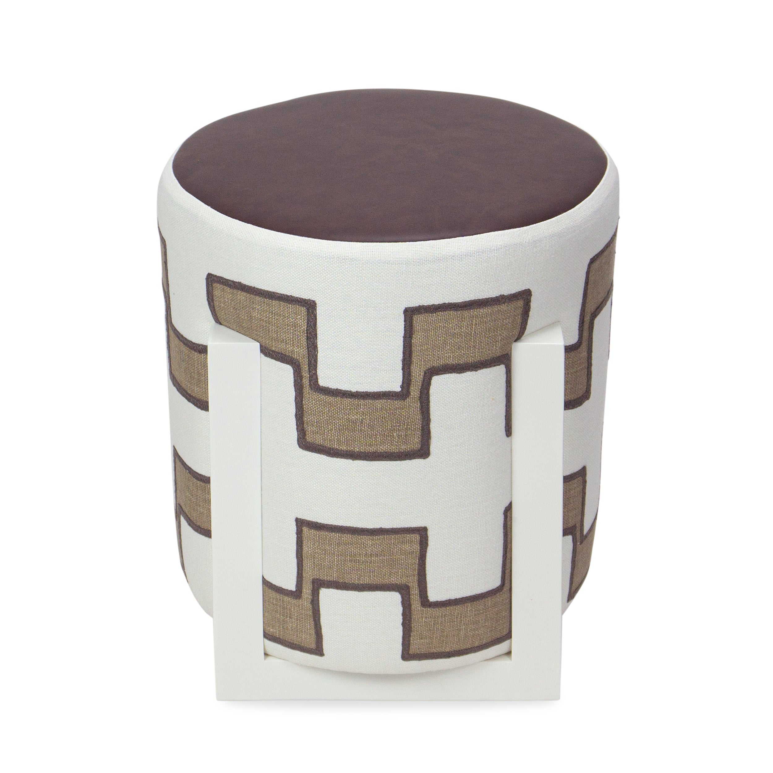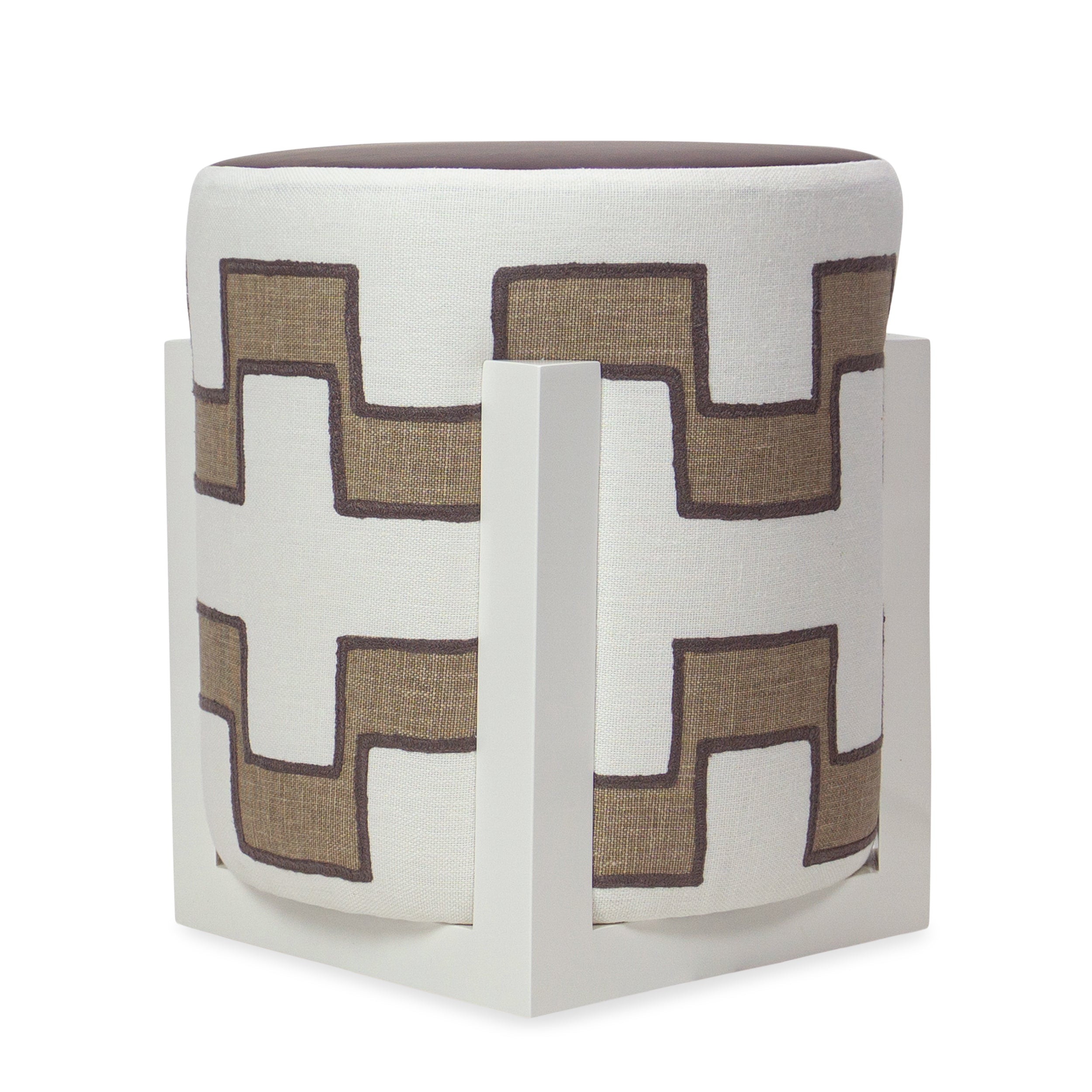 Bringing a fresh perspective to a familiar accent piece, the Basket Ottoman encases a typical cylinder ottoman within a lacquer frame. This angular structure provides contrasting visual appeal for the rounded silhouette.
