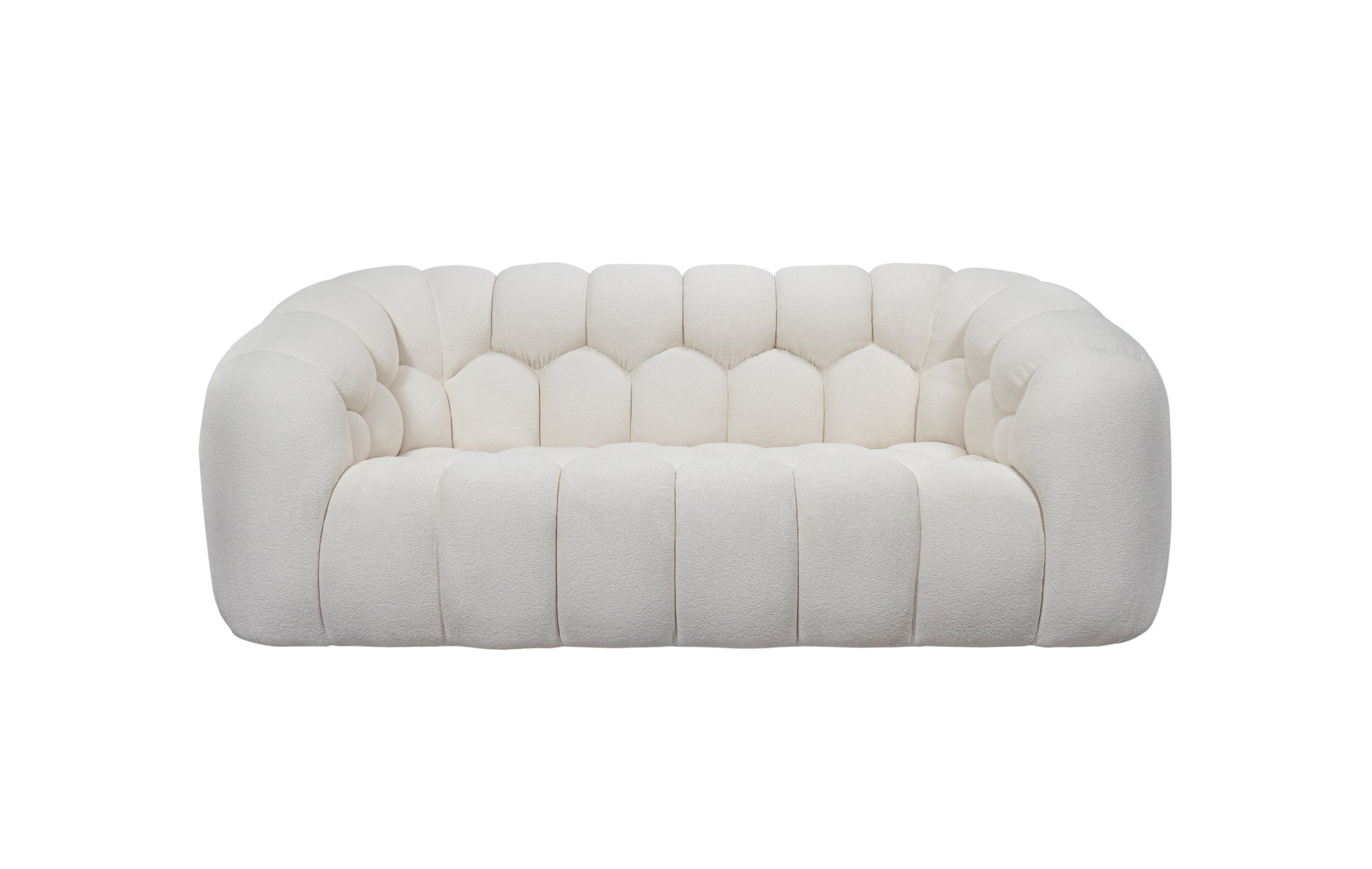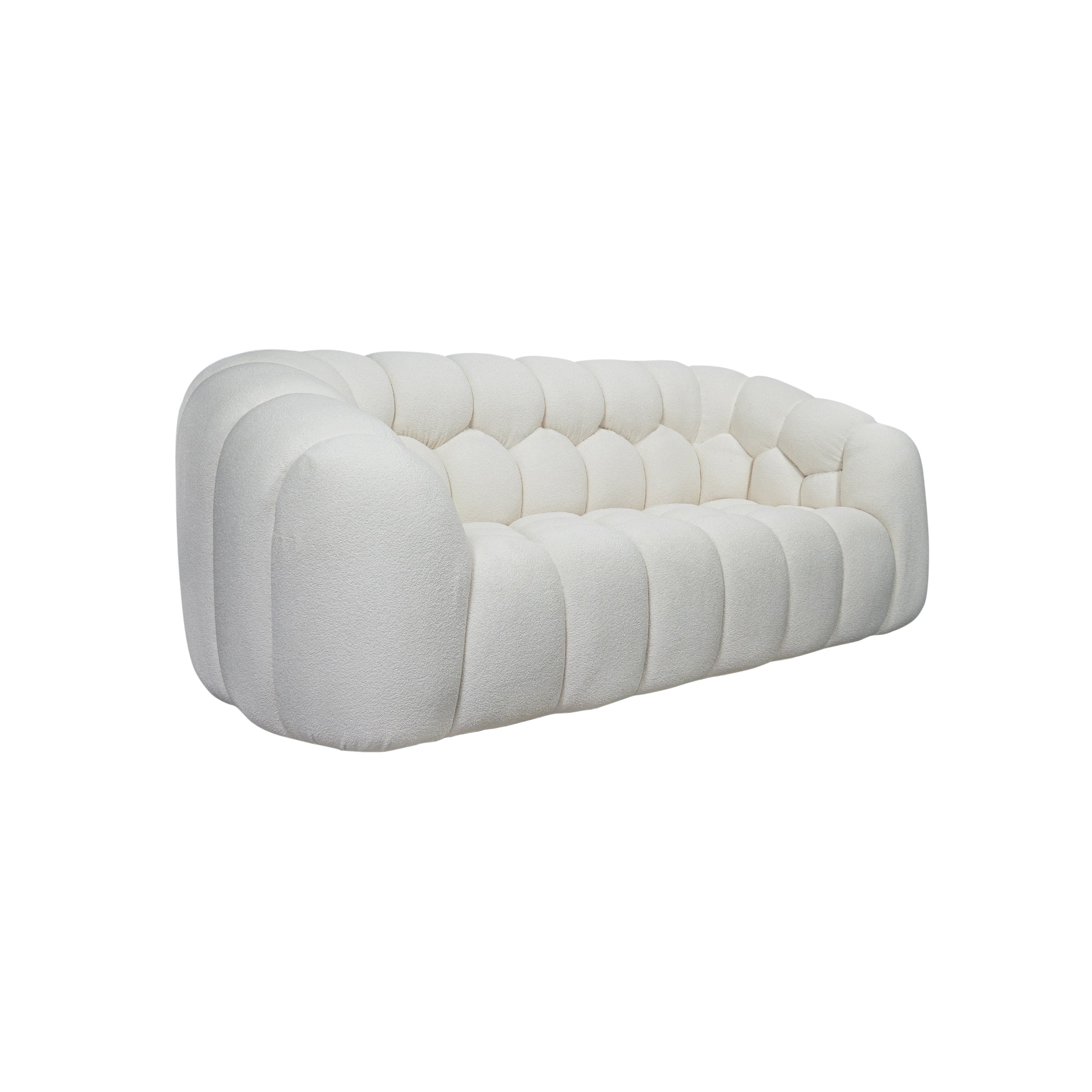 A fresh iteration of the iconic Bubble Sofa, our Aerie Sofa is more than a piece of furniture—it's an artful sanctuary that instantly invites relaxation. Allover channel tufting evokes crystalline shapes found in nature, while the curved form creates a cocoon of unparalleled comfort.