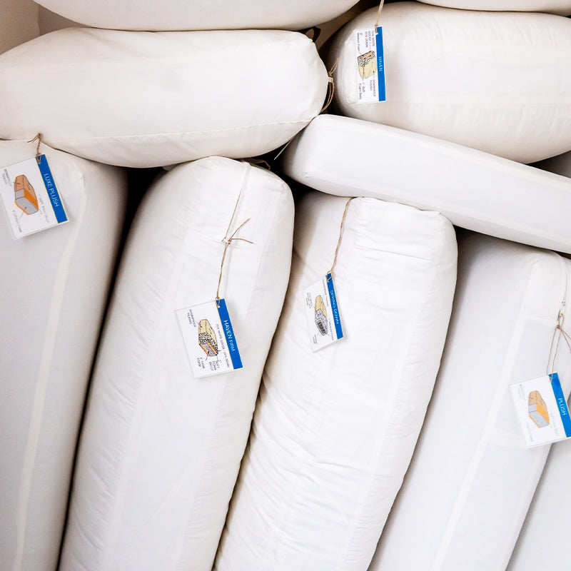 We source high-density foam from a local Connecticut vendor, who also recycles all of our foam scraps (including those removed during reupholstery). That foam is adhered to the spring system and wrapped in a down casement. In addition, all of our throw pillows are filled with custom down inserts.
